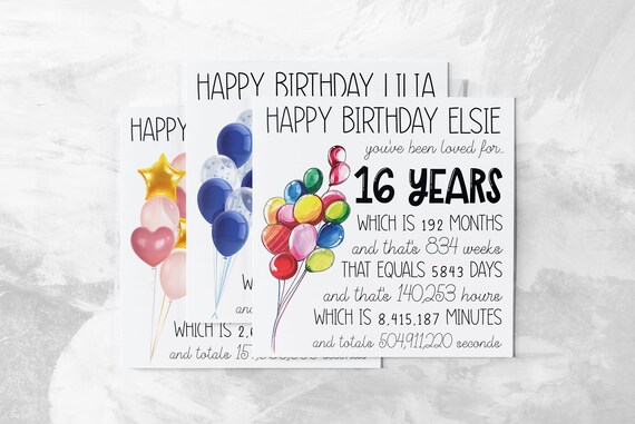 Personalised 16th Birthday Card 16 Year Old Balloon Card Happy