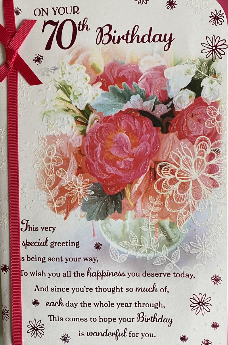 70 Birthday Female flowers in vase โ Cards Delights