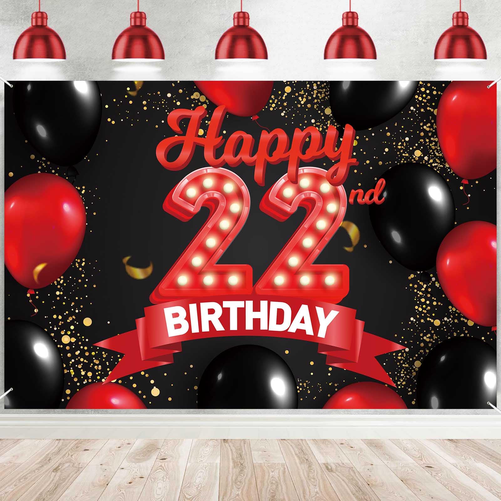 Amazon.com: Happy 22nd Birthday Red and Black Banner Backdrop